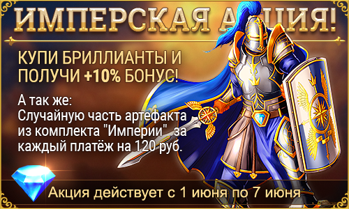 За каждые 120 рублей вы получите случайную часть артефакта из комплекта "Империи"!